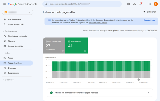 Après plusieurs semaines de travail, le rapport sur l’indexation des vidéos est désormais disponible sur l’ensemble des comptes.