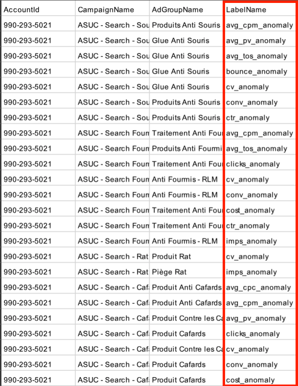 En plus de mesurer vos principaux KPI, les scripts peuvent également vous permettre de suivre « l’état de santé » de vos comptes. Ils analysent les QS (quality score) de vos mots-clés, mais également les différents facteurs de qualité qui leurs sont attribués. De cette manière, vous restez attentif à la compétitivité de vos comptes et pouvez identifier rapidement les éléments à revoir pour conserver une bonne dynamique.