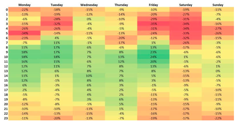 Selon la volumétrie d’impressions et de clics de votre compte, vous avez aussi la possibilité de faire ajuster automatiquement les enchères en fonction des heures de la journée. En fonction de votre historique et des opportunités qui s’offrent à vous, ces ajustements peuvent s’avérer très utiles pour optimiser votre présence durant les moment les plus bénéfiques ou à l’inverse, vous mettre en retrait lorsque le jeu n’en vaut pas la chandelle.