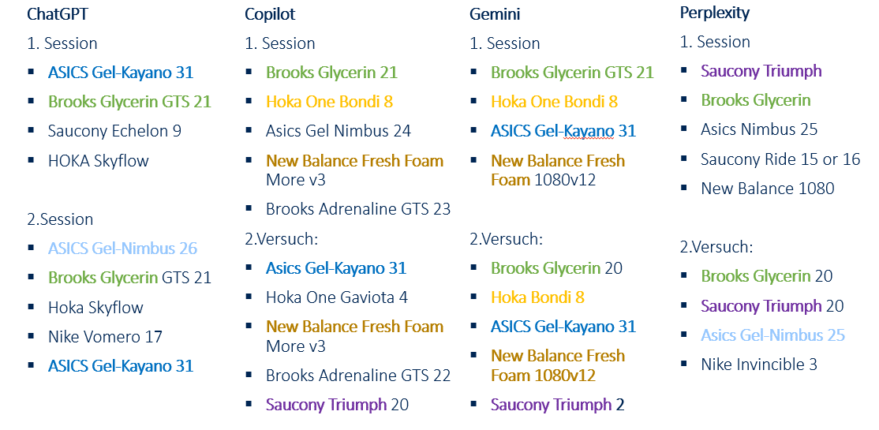 Each major LLM offers different products, but one shoe is consistently recommended by all four AI systems tested.