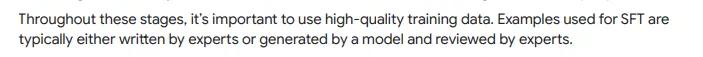 After pre-training, the model is refined using high-quality examples, either created by experts or generated by other models and then reviewed by specialists. This process is similar to learning good textual structure by observing examples of well-written texts.