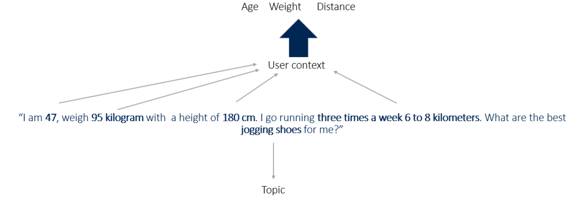 ChatGPT takes into account attributes such as distance travelled and weight. Based on the referenced sources, it deduces a context of being overweight and long-distance running.
