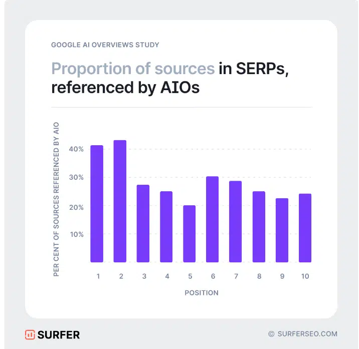 Par exemple, analyses conducted by Rich Sanger, Authoritas, and Surfer show that the snippets generated by Google AI display approximately 50% overlap in their selection of sources.